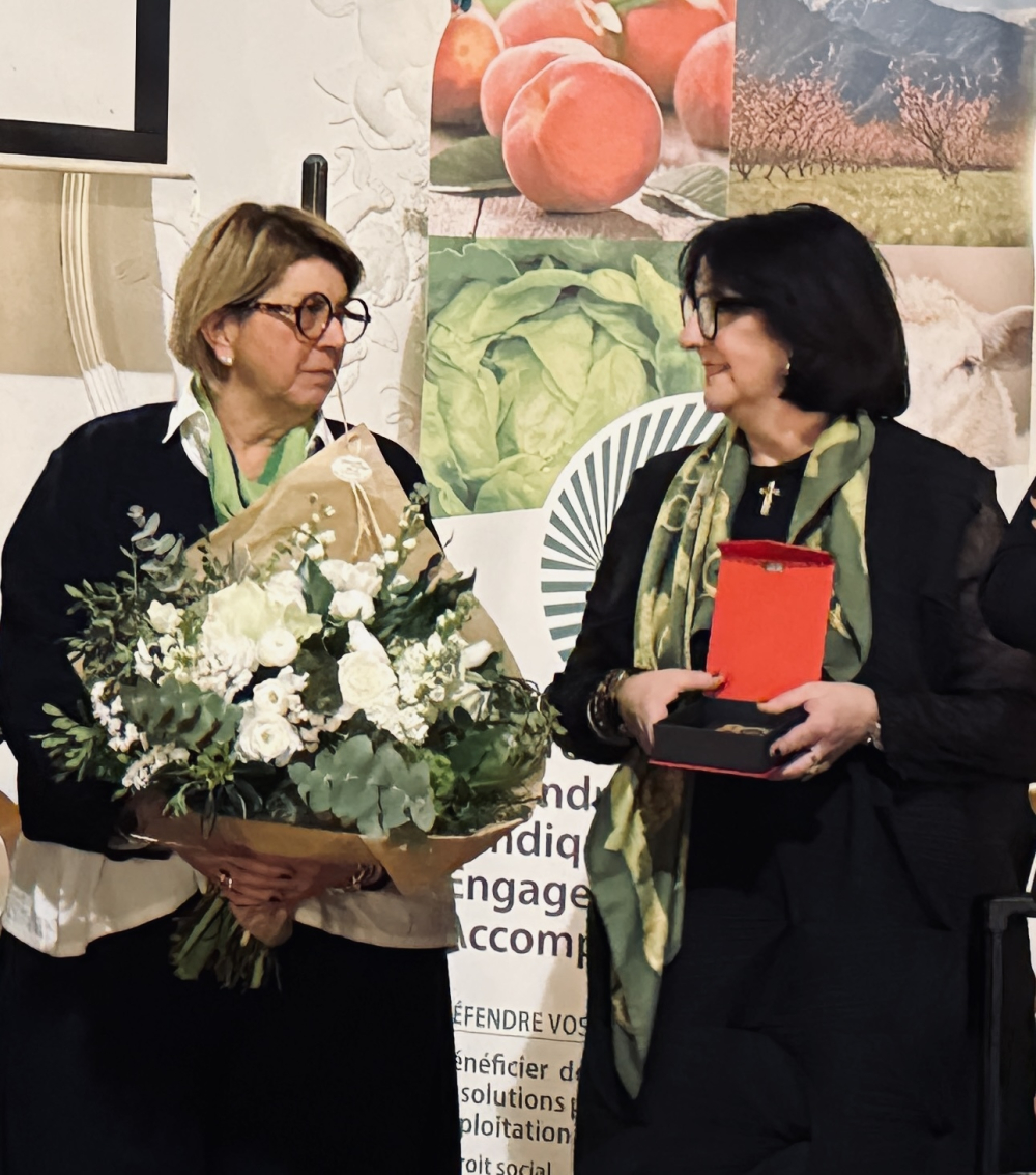 La remise des prix d'honneur met en lumière celles et ceux dont l'investissement a contribué, ou contribue encore, à faire vivre la fédération. David Massot est salué pour son investissement sur la question de l'eau, enjeu majeur dans un territoire confronté à la sécheresse. Dans le domaine de l'élevage, Tony Baurès et Arnaud Carcassonne sont distingués, notamment pour leur engagement face à la Dermatose nodulaire contagieuse. Derrière leurs mots, c'est toute la réalité de ces derniers mois qui affleure, entre difficultés, décisions lourdes et solidarité entre éleveurs. Alberte Batlle Jonca, viticultrice à Espira-de-l'Agly et ancienne présidente de la section des agricultrices, est chaleureusement applaudie. "Une grande dame", sourit Bruno Vila. À ses côtés, Nathalie Capillaire, directrice de la FDSEA, est elle aussi mise à l'honneur pour son engagement quotidien. Moment particulièrement symbolique de la soirée, Bruno Vila reçoit à son tour un prix d'honneur, remis par Enzo Rodriguez, président des Jeunes agriculteurs 66. Une image forte, qui dit à elle seule la continuité entre générations et la vitalité du collectif. Et comme dans une course de relais, évoquée par Roger Majoral, le témoin continue de circuler... solidement tenu.