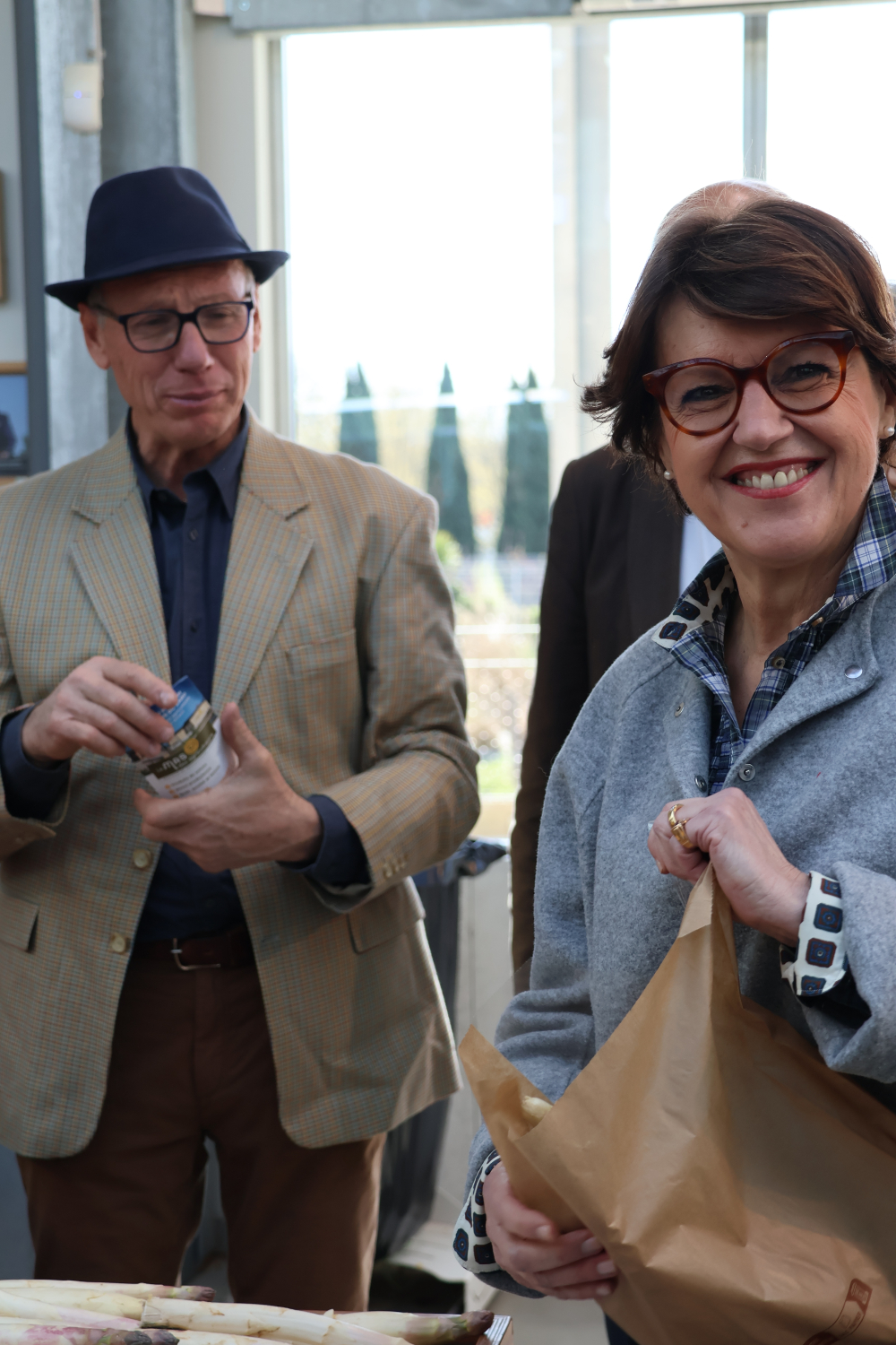 La déambulation dans le magasin lui a permis de goûter aux fraises d'un maraicher présent pour l'occasion et de découvrir les différents espaces du magasin. Une dégustation de vins et d'amuses-bouches préparées par le chef Olivier Douet, du restaurant 'Lou Mas'.