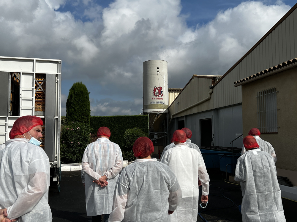 Un nouveau plan de développement de la filière cunicole a effectivement été instauré pour la période 2023-2027, avec une enveloppe budgétaire de 1,4 million d'euros dédiés au soutien de la filière. Pierre Ribot, ancien président des établissements Ribot aujourd'hui retraité, confirme quant à lui son engagement : "La filière de la région a encore la chance d'avoir une entreprise familiale à sa disposition, prête à avancer et à investir. Mais à ce jour, si on continue à perdre des éleveurs, nous ne pourrons pas nous permettre d'investir. Il faut envisager la filière régionalement : nous sommes tous dans le même bateau". Aurélie Ribot, sa fille et présidente de la société, confirme : "Vous accueillir est l'occasion de réaffirmer que nous avons besoin de vous pour vendre. Nous nous donnons les moyens de trouver des clients, malgré la baisse de consommation de lapins. Nous avons par-dessus tout besoin de garder notre élevage". Les abattoirs de Lapalud, visités par les adhérents du groupement, ont rassuré quant au traitement des lapins, et les investissements dans des broyeurs pour limiter les frais d'équarrissage ont permis une prise en compte des problématiques du point de vue transformation également : chacun a à apprendre de l'autre.