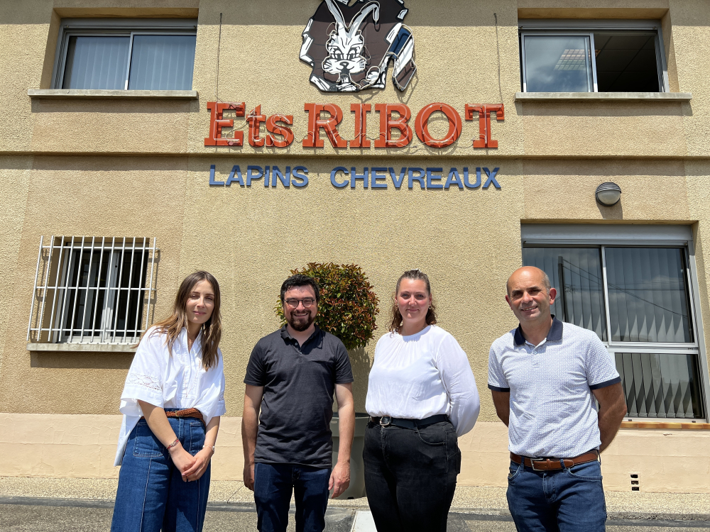 Aurélie Ribot, présidente et directrice commerciale des établissements Ribot, Romain Priolet, vice-président du groupement, Chloé Borgat, directrice du groupement, et Frédéric Blot, président de la Fenalap, l'organisation cunicole nationale.