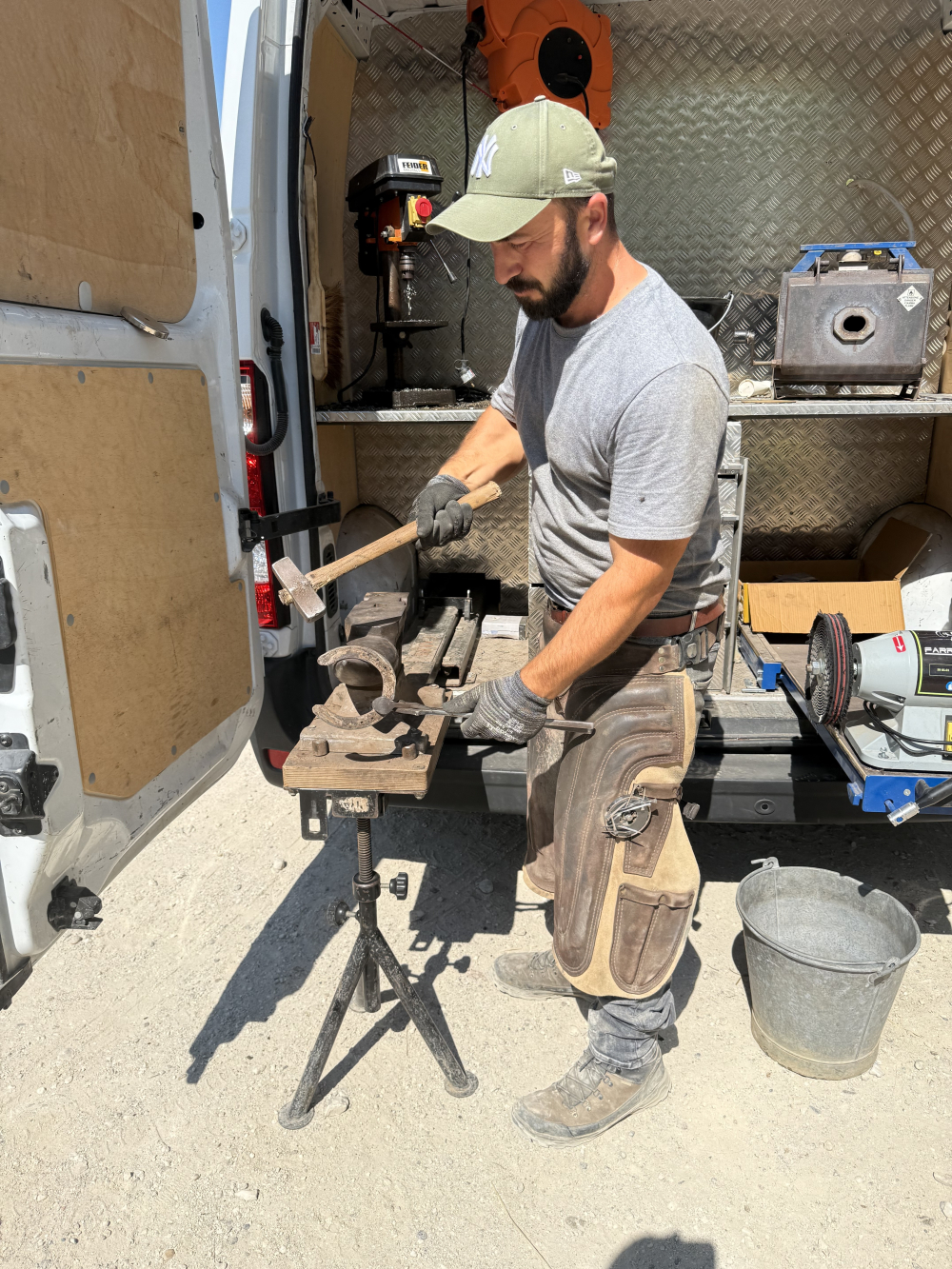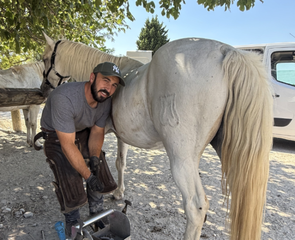 6 h 30, démarrage à Beaucaire. Ferrage, demi-ferrure, parage...la journée commence tôt et sur les chapeaux de roues pour Jessy Chaix. L'Arlésien, maréchal-ferrant depuis bientôt quinze ans, aligne les kilomètres et les interventions sans faillir. Après Beaucaire, direction Arles pour un autre cheval, puis Pont-de-Crau, Mouriès, Fontvieille, et enfin Eyragues en fin d'après-midi pour s'occuper d'un cheval de trait. Une véritable tournée express dans le triangle d'or de l'équitation provençale.