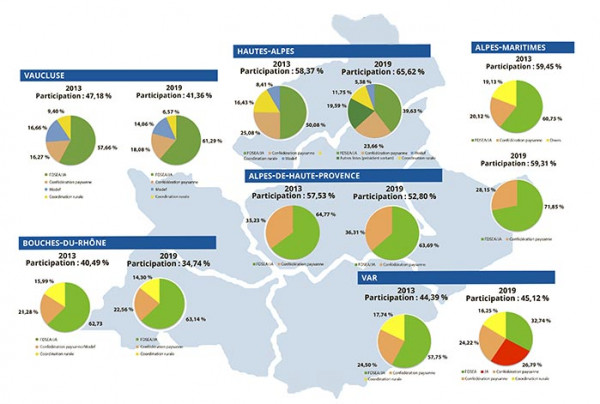 Au final, les listes FDSEA/JA emportent les suffrages dans toutes les Chambres de la région, alors que l’incertitude régnait dans le Var et les Hautes-Alpes, avec la présence de deux listes affiliées aux réseaux FDSEA et JA. Reste maintenant à élire les présidents et bureaux lors des sessions d’installation – le 1er mars dans le Var –, avant la session d’installation de la Chambre régionale, qui devrait avoir lieu mi-mars.