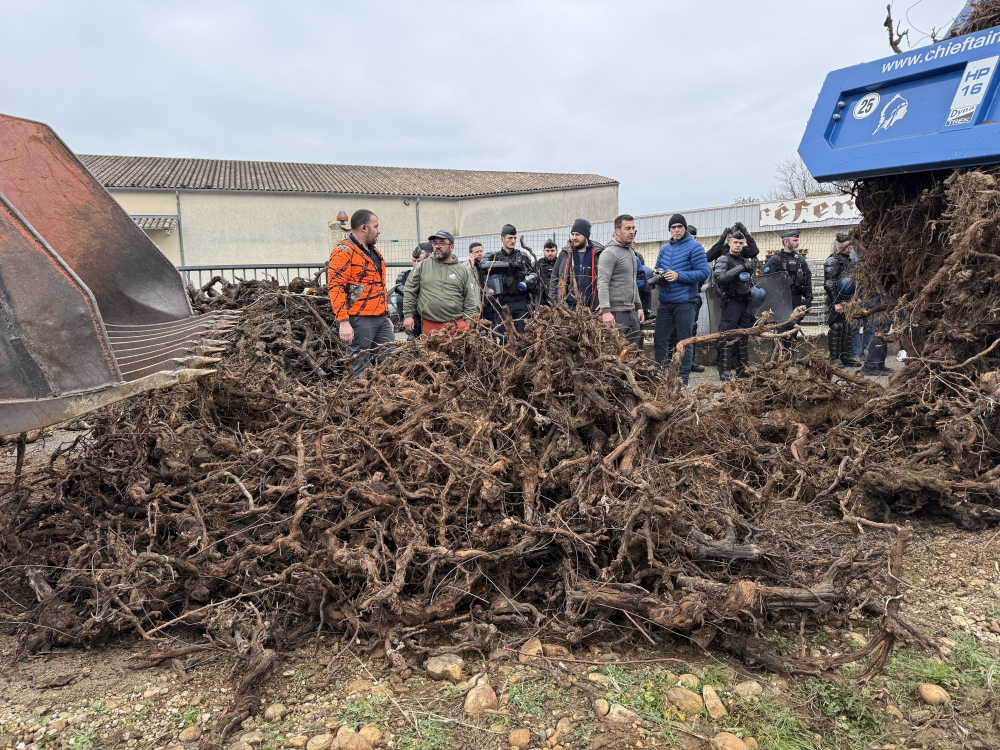 Ils ont pris soins de déposer plusieurs bennes de sarments de vignes partout où ils sont passés.