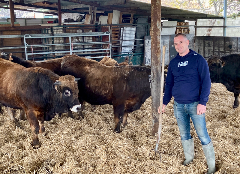 Boucher de formation, Jordan Rumello est devenu éleveur bovin à Eyguières, par passion. Une complémentarité qui lui permet de maîtriser la quasi-totalité de la chaîne de valeur : de l'engraissement à la commercialisation en passant par la découpe, réalisée sur l'exploitation.