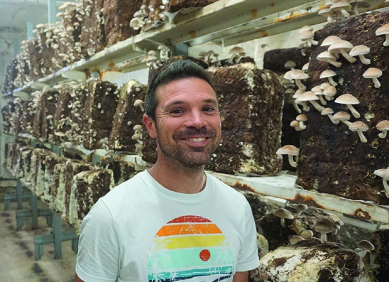 A Fontiès-d’Aude, Romain Loubet a pris le contrepied de la tradition viticole familiale pour bifurquer vers la culture de champignons. Dans une ancienne cave, il a tout construit de ses mains pour installer sa champignonnière telle qu’il l’imaginait.