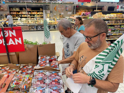 À l'appel nationale du syndicat Légumes de France, les producteurs de tomates des Pyrénées-Orientales ont mené une opération étiquetage dans une grande surface de Perp...