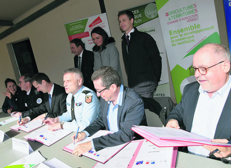 Le 7 février, un protocole de partenariat était signé entre la préfecture de l’Hérault, la Chambre d’agriculture, la FDSEA, les JA, le groupement de gendarmerie départementale et la direction départementale de la sécurité publique, à Mauguio. La guerre contre les vols et dégra...