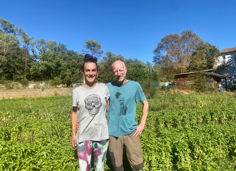 Installés à Claviers, Pauline et Arnaud produisent du basilic destiné à la transformation en pistou depuis 2019. Avec peu de moyens et beaucoup d'obstination, le couple a réussi à concrétiser en quelques années un projet de vie mûrement réfléchi.