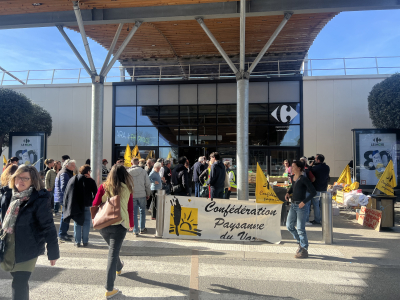 Le 14 février, à Draguignan, la Confédération paysanne du Var a réuni ses militants devant une enseigne de la grande distribution, pour continuer à réclamer des prix r...