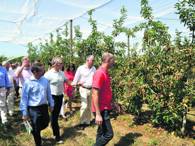 Didier Guillaume est également venu dans l’Hérault à la rencontre de Robert Cecchetti, producteur de pommes sur une exploitation de 70 ha, à Mudaison. Entre la chaleur...