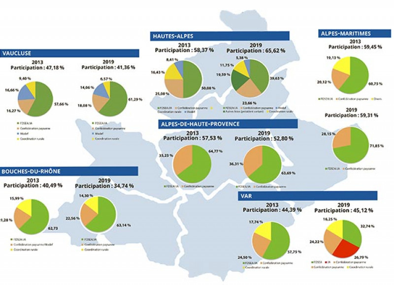 En attendant les résultats définitifs communiqués par le ministère de l’Agriculture, force est de constater que la liste FNSEA/JA consolide ses positions en région. Le Var et les Hautes-Alpes se démarquent de la tendance régionale, avec une hausse de la participation par rappo...